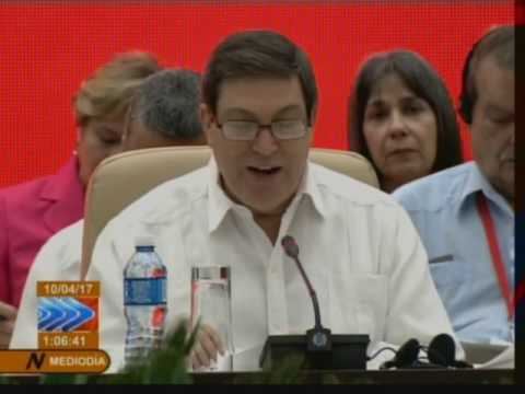 El vertiginoso desarrollo de los recientes acontecimientos y las amenazas a los postulados de la Proclama de Paz de América Latina y el Caribe, firmada en esta misma ciudad, hace tres años, subrayan la importancia de la Declaración de Caracas y llenan de nuevo sentido y urgencia a este Consejo, para intercambiar sobre lo que sucede, particularmente las amenazas contra la Revolución Bolivariana, y el papel de la Alianza. Afirmó el canciller cubano, Bruno Rodríguez, en la apertura del XV Consejo Político del Alba-TCP, La Habana, 10 de abril de 2017.