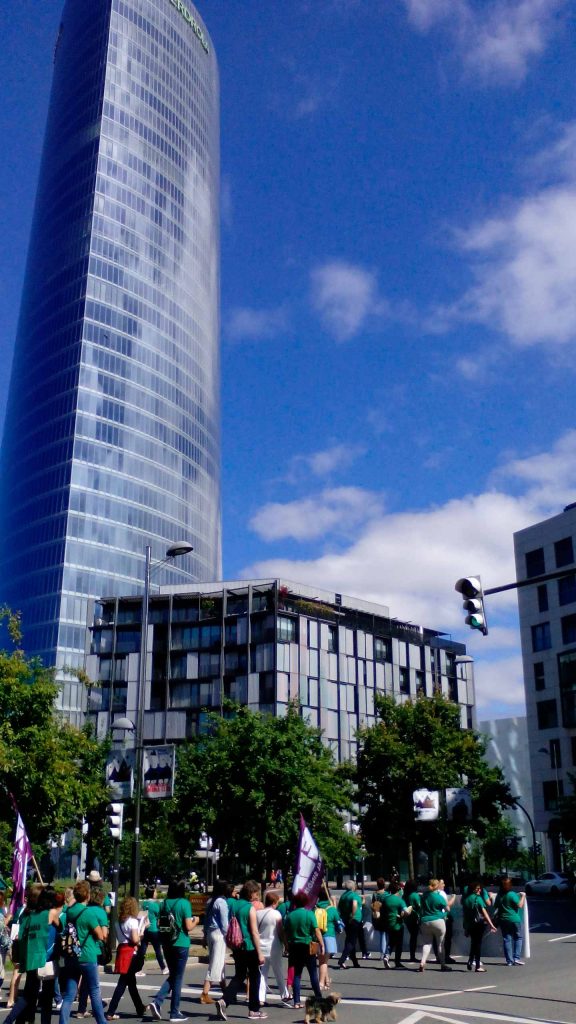 A pesar de que las han subido al 90% los servicios mínimos y al señor diputado general lo único que le interesa es un segundo puente de hormigón en la Ría del Nervión, junto al de Rontegui (Barakaldo), que construyó el marqués de Torroja, padre de una famosa cantante de un grupo llamado Mecano; las trabajadoras de las Residencias de Bizkaia siguen con sus carteles, pegatinas y megáfonos pisando el asfalto de esta tierra que vio germinar y crecer el origen de la lucha obrera de los pueblos de España y de la fundación del Partido Comunista en esta Margen Izquierda y Zona Minera.