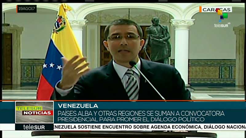 El canciller venezolano Jorge Arreaza informó que un grupo de países del ALBA y otras regiones responderán a la convocatoria de una reunión de alto nivel para buscar el diálogo y la paz en Venezuela impulsada por el presidente Nicolás Maduro. teleSUR