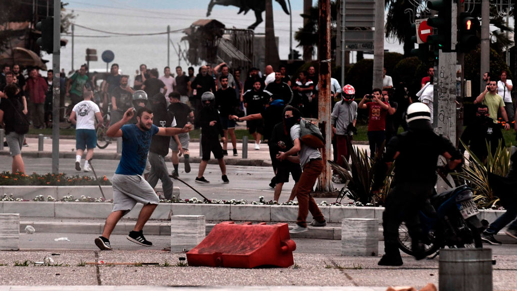 La agencia de noticias griega AMNA informó de que ultras del equipo PAOK Salónica intentaron irrumpir en el acto, pero la Policía lo impidió empleando gas lacrimógeno.