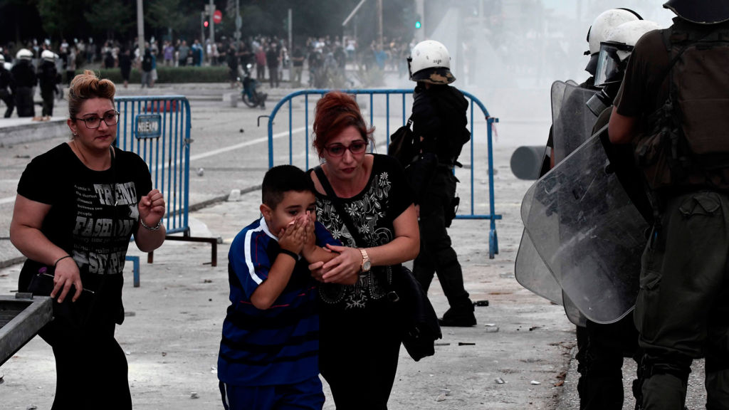 “¡Macedonia es Grecia!” o “¡Traidores!” han sido algunas de las consignas coreadas por los manifestantes, que han lanzado piedras a los agentes. Las últimas encuestas revelan que el 70 % de los griegos está en contra del acuerdo.