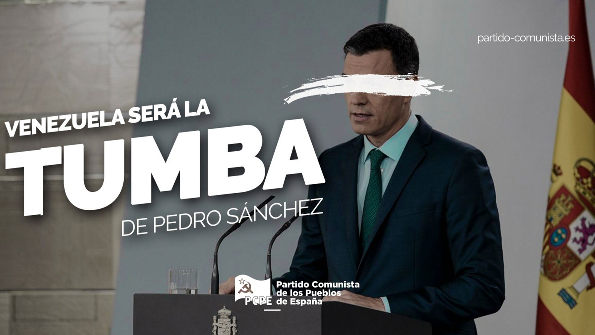 El pasado 26 de enero, el Buró Político del PCPE hizo pública una declaración llamando a que el reconocimiento al golpismo venezolano se convirtiese en la tumba del Gobierno de Pedro Sánchez. Tras la comparecencia del Presidente del Gobierno y el reconocimiento oficial del golpismo, nuestro llamamiento cobra pleno sentido y se convierte en una urgencia.