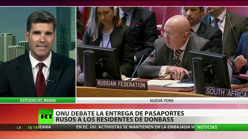 El Consejo de Seguridad de la ONU debatió la petición de Ucrania sobre la decisión de Rusia de facilitar la solicitud de pasaportes para los residentes de Donbass. El representante permanente ruso, Vasili Nebenzia, afirmó que no es un mensaje o señal, sino un proceso transparente elaborado desde hace mucho tiempo