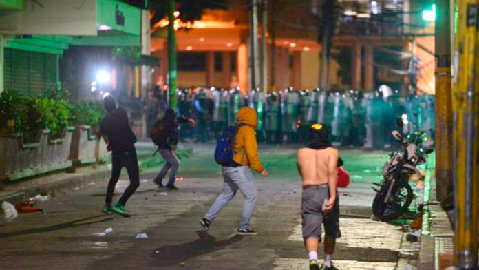 En plena protesta, decenas de policías atacaron intempestivamente con gas lacrimógeno a los manifestantes, que se vieron obligados a dispersarse, aunque algunos atacaron con piedras a los agentes, entre el humo que se dispersaba por las calles.