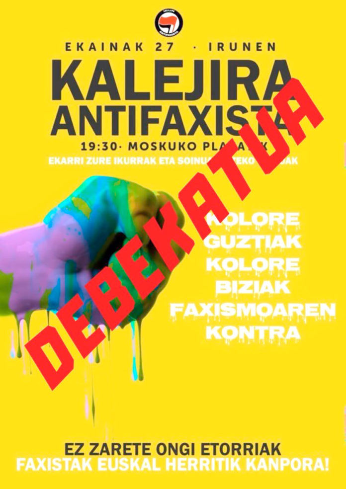 Ekainaren 27rako VOXek antolaturiko ekitaldia dela eta deitua zegoen Kalejira Antifaxista bezperan debekatu du Ertzaintzak.