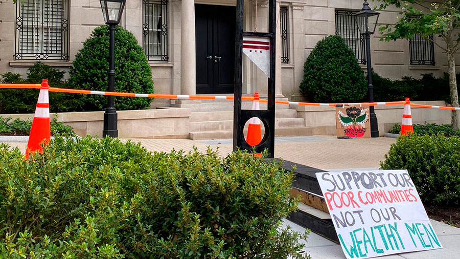 DC protesters have set up a “guillotine” in protest of Jeff Bezos in front of his complex in DC pic.twitter.com/VZ0AWTJqaV