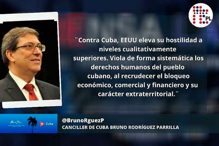 Naciones Unidas, 21 sep (Prensa Latina) El canciller de Cuba, Bruno Rodríguez, rechazó hoy la elevada hostilidad del Gobierno de Estados Unidos contra su país, mientras recrudece el bloqueo que aplica desde hace más de 60 años.