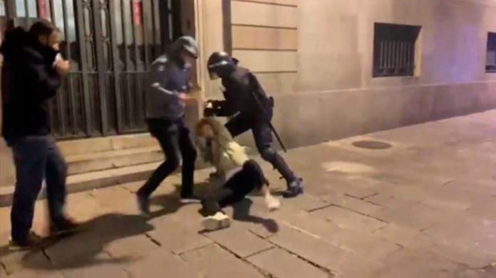 En el vídeo se observa como los policías infiltrados se tapan la cara con capuchas y cogen una piedra del suelo para incriminar al detenido en Ciutat Vella.