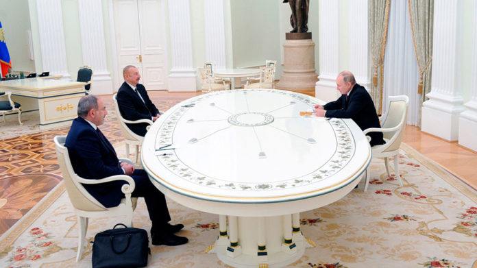 El presidente de Rusia, Vladímir Putin, el primer ministro de Armenia, Nikol Pashinián, y el presidente de Azerbaiyán, Ilham Aliyev, han suscrito una declaración conjunta sobre el desarrollo de Nagorno Karabaj tras las «importantes negociaciones» celebradas este 11 de enero en Moscú. Durante la reunión se discutió el cumplimiento del acuerdo de alto el fuego completo y cese de todas las hostilidades en la zona de Nagorno Karabaj que fue suscrito el pasado 9 de noviembre.