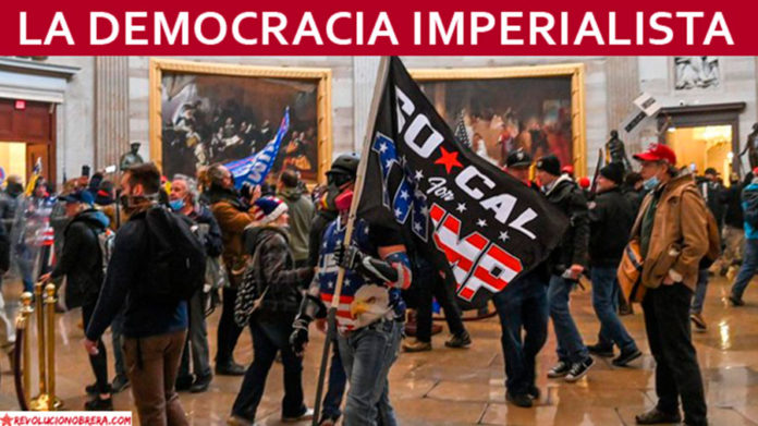 Democracia proletaria que solo puede ser la dictadura de los explotados sobre sus explotadores, la dictadura de los oprimidos sobre sus opresores, ¡la Dictadura del Proletariado! Y será así como una verdadera insurrección armada de los trabajadores en Estados Unidos, no solo destruirá los retablos y atriles del Capitolio, sino todo el poder político de los dictadores imperialistas.