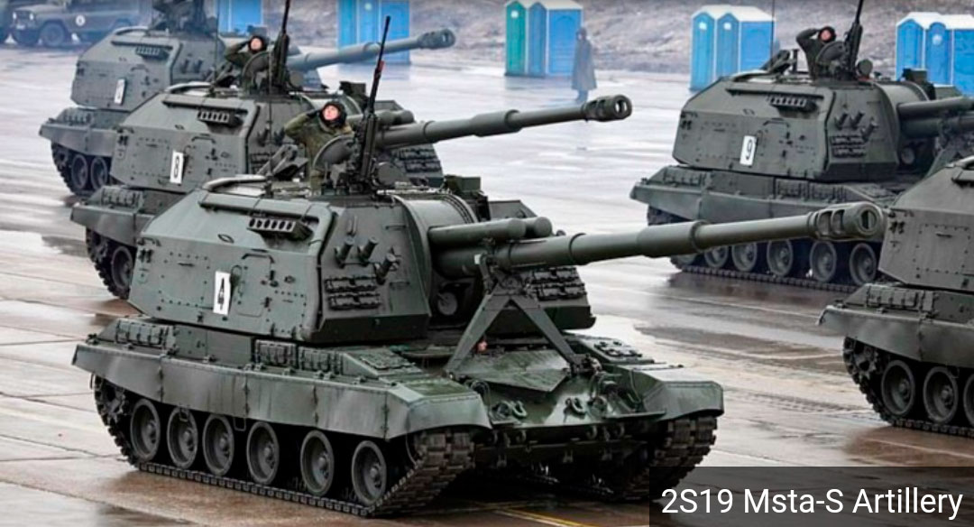 Según los informes, los armamentos vistos en tránsito incluyen tanques de batalla T-90, vehículos de combate de infantería BMP-3 y piezas de artillería autopropulsadas Msta-S de 152 mm.