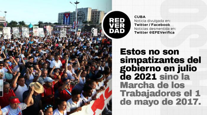 Ha sido tanta la avalancha desinformativa contra Cuba que medios como RTVE, la televisión española, y la propia agencia de noticias EFE, ha activado sus sistemas de verificación de noticias falsas, entre las que se cuentan las siguientes: