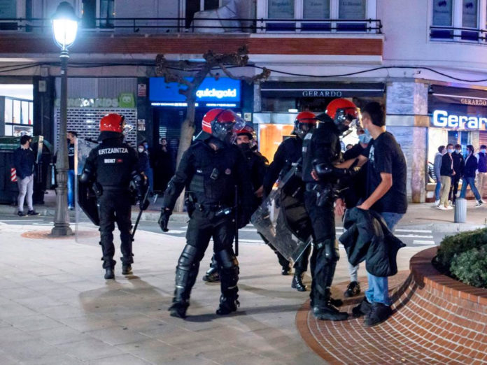 - Por las anteriores razones, el empobrecimiento de la clase obrera es cada vez más evidente. Ante esto la burguesía se está valiendo de sus mercenarios armados para disciplinar a la gente. La razón de los ataques de la policía durante los últimos días no tiene nada que ver con los criterios sanitarios. ¿Qué criterios sanitarios pueden ser extender el hambre, precarizar constantemente el sistema sanitario, desahuciar al que no tiene dinero o empujar a los más débiles al alcoholismo, a la drogodependencia o al suicidio? Los ataques de los últimos días tienen relación directa con el control policial de las calles.