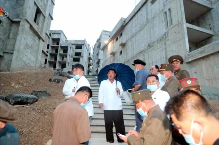 El estimado compañero Kim Jong Un, Secretario General del Partido del Trabajo de Corea y Presidente de Asuntos Estatales de la RPDC, dirigió en el terreno la construcción del reparto residencial con terraza en la zona ribereña del río Pothong.