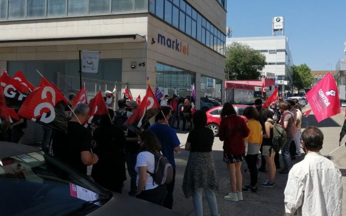 “La sección sindical de CGT somos quienes justamente hemos denunciado el convenio y logrado una sentencia de la sala de lo social de la Audiencia Nacional declarando que el nuevo convenio colectivo que querían implantar en Marktel es contrario a derecho. La sección es también la que ha puesto otras denuncias en Inspección de Trabajo, ha realizado paros durante 30 minutos por turno todos los lunes desde el 15 de marzo contra las irregularidades permanentes que hay en la empresa y dos concentraciones frente a la empresa en el mes de junio.”, aseguran los trabajadores.