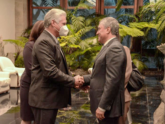 El Primer Secretario del Comité Central del Partido y Presidente de la República, Miguel Díaz-Canel Bermúdez, sostuvo un encuentro con el excelentísimo señor Viacheslav Volodin, Presidente de la Duma Estatal de la Asamblea Federal de la Federación de Rusia, quien realiza una visita a Cuba.