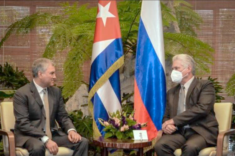 Durante el encuentro, el mandatario cubano destacó el excelente estado de las relaciones entre ambas naciones, al tiempo que reiteró la voluntad de consolidar el alto nivel de diálogo político y los intercambios en sectores de interés común, incluida la esfera parlamentaria. Agradeció la resolución contra el bloqueo de los Estados Unidos a la Isla, que anualmente emite la Duma Estatal, así como la ayuda humanitaria recibida desde la Federación para mitigar los efectos de la pandemia.