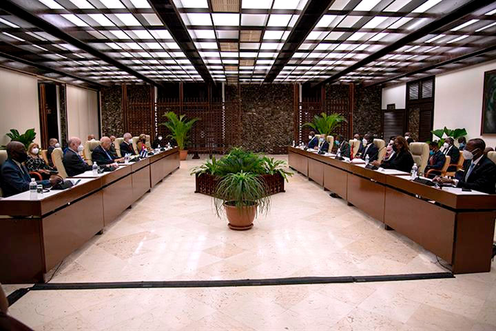 Conversaciones entre delegaciones de Cuba y Angola en salón de protocolo El Laguito, La Habana.