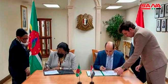 Nueva York, 07 mar (SANA).— La sede de la delegación permanente de Siria ante las Naciones Unidas en Nueva York fue testigo de la suscripción de un acuerdo para establecer relaciones diplomáticas entre Siria y la Mancomunidad de Dominica.