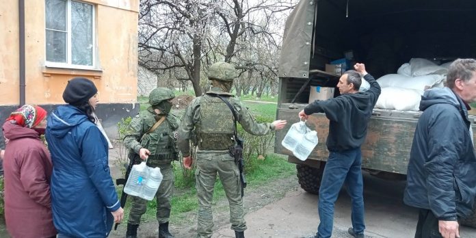 Debido a los constantes bombardeos, es imposible distribuir la ayuda humanitaria de forma masiva, por lo que las tropas rusas están entregando agua embotellada y alimentos esenciales de forma direccional. Esto incluye la harina, los alimentos enlatados, los cereales, el aceite de girasol, la leche y los alimentos para bebés.