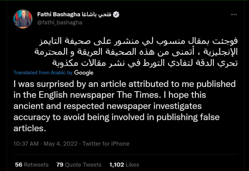 Es irónico que, justo un día antes de la publicación de la entrevista, Fathi Bashagha haya expresado