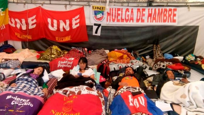 La huelga de hambre comenzó el pasado 3 de mayo y la desarrollan cerca de 30 docentes, representantes de organizaciones sociales, de mujeres y estudiantiles en las ciudades de Quito y Guayaquil.