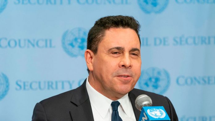 Samuel Moncada, embajador de Venezuela ante la ONU, habla con la prensa en Nueva York, EE.UU., el 28 de febrero de 2019 | Lev Radin / Legion-Media