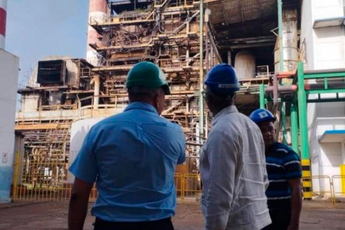 En esa central termoeléctrica el dirigente partidista se interesó por el proceso de alistamiento de sus unidades generadoras; y, de forma particular, dialogó en los talleres con quienes, para mantenerlas funcionando, constituyen verdaderos ejemplos de la resistencia creativa convocada actualmente ante el recrudecimiento del bloqueo.