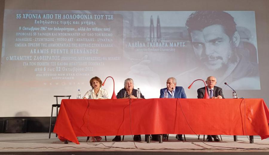 El 8 de octubre de 2022, en el abarrotado Studio New Art Cinema de Atenas, en presencia de la doctora Aleida Guevara March, quien viajó especialmente desde La Habana para asistir al evento, numerosos amigos de Cuba en Grecia conmemoraron el 55 aniversario de la caída en combate de Ernesto Che Guevara.