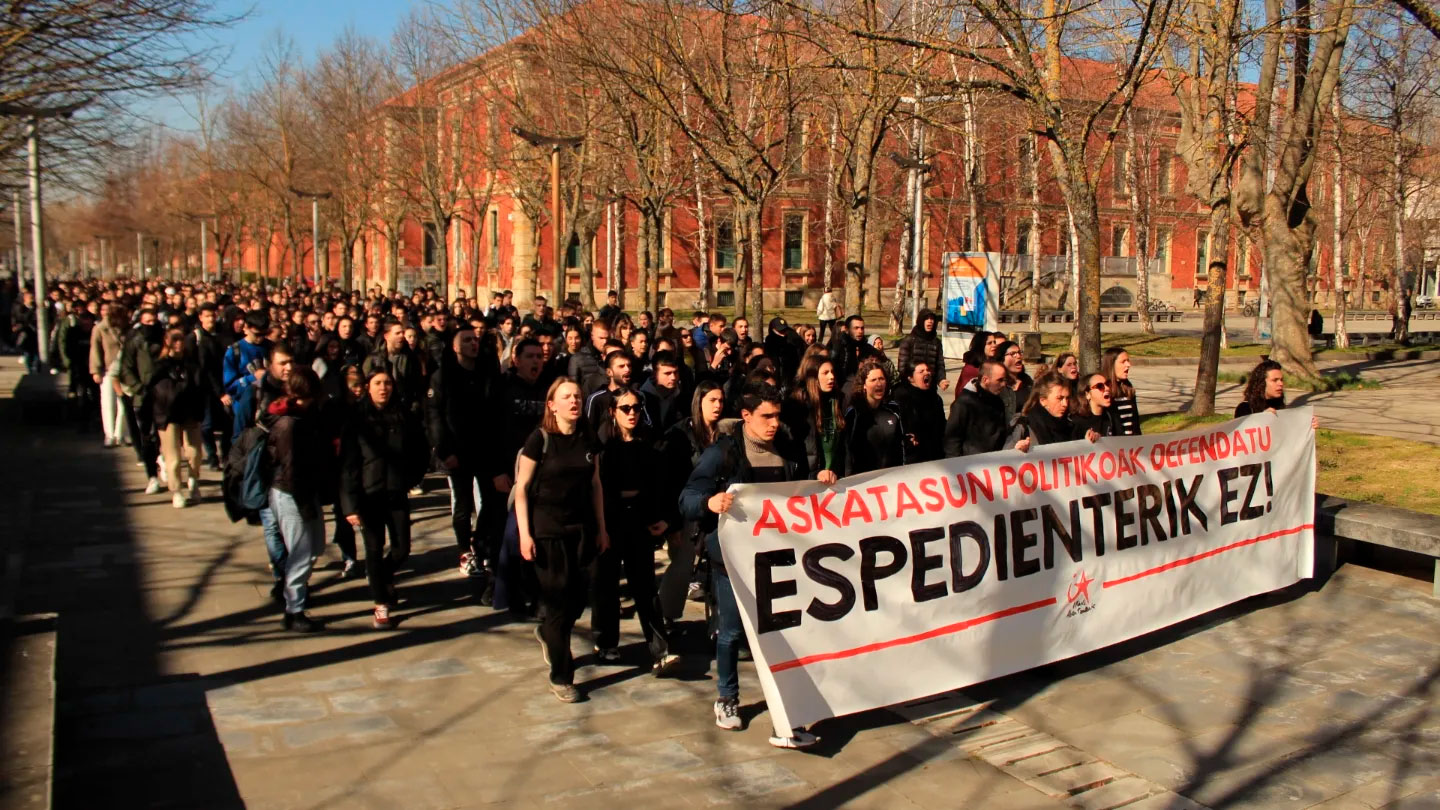 En marzo del pasado año, durante una huelga estudiantil convocada por Ikasle Abertzaleak (IA) en las cuatro capitales del sur de Euskal Herria, fueron detenidos por la Ertzaintza 34 alumnos de la Universidad del País Vasco (EHU/UPV). Ahora les quieren abrir expedientes académicos, además de que los procesos judiciales están en curso. La apertura de expedientes podría acabar en expulsiones.