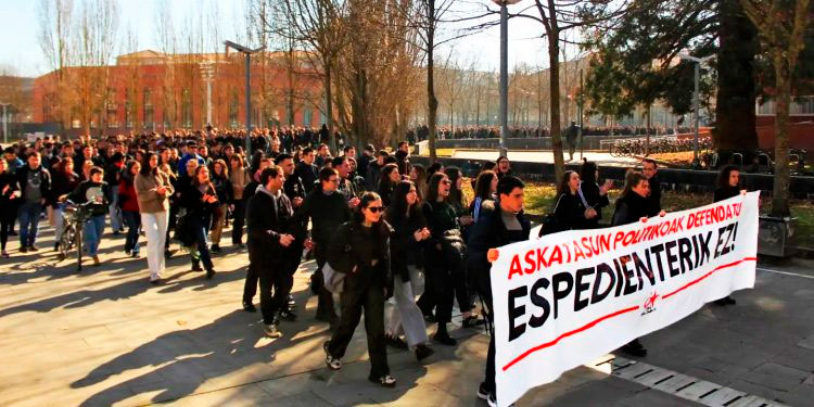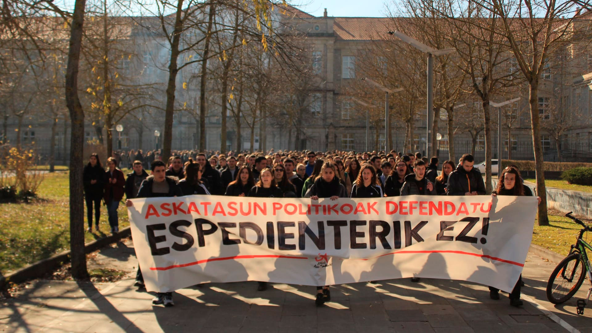 También ha recordado que “los estudiantes que fueron sancionados mientras luchaban por un espacio necesario para la organización política en el campus de Ibaeta (Donostia, Gipuzkoa), los intentos de criminalización del grupo del Rector en la lucha por las condiciones laborales de los limpiadores, y el asfixiante seguimiento y hostigamiento que tenemos que soportar en el umbral de cada movilización”.