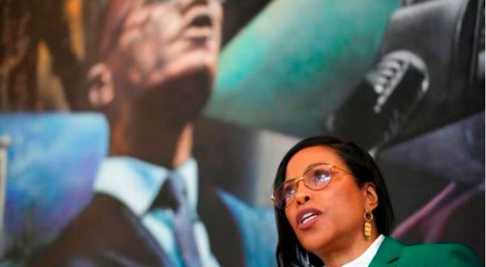 Ilyasah Shabazz, hija de Malcolm X, habla durante una rueda de prensa en el Malcolm X & Dr. Betty Shabazz Memorial and Educational Center de Nueva York, martes 21 de febrero de 2023. (AP Foto/Seth Wenig) (Seth Wenig)