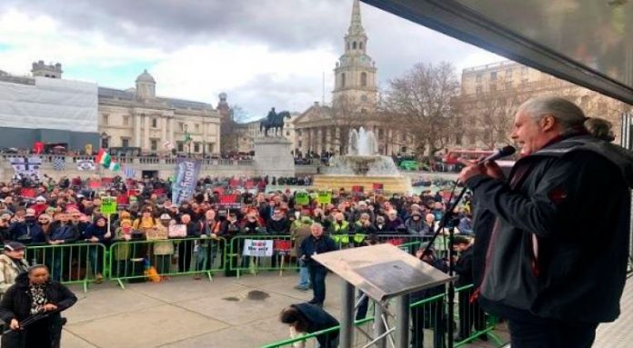 De acuerdo con reportes de prensa, al evento asistieron el exlíder del Partido Laborista británico, Jeremy Corbyn. Los manifestantes alertaron que el envío de armas a Ucrania pone en peligro la paz en la región.