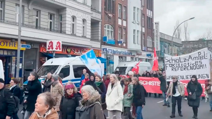 También se instó a las autoridades alemanas – durante las protestas – a facilitar las conversaciones de paz entre Moscú y Kiev, así como a crear la arquitectura de seguridad de Europa «desde Lisboa hasta Vladivostok».