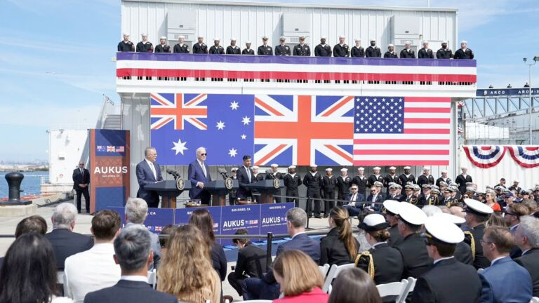 Con anterioridad, el presidente norteamericano y los primeros ministros de Gran Bretaña y Australia publicaron una declaración conjunta de que este último país fundará en cooperación con EE.UU. y Gran Bretaña una flotilla de 8 submarinos nucleares invirtiendo 245 mil millones de US$ en la base naval de San Diego, California, puerto matriz de la flota del Pacífico de las fuerzas norteamericanas.