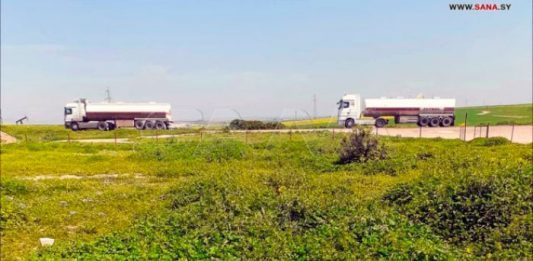 Activistas locales de la localidad de Al-Yarubiyah informaron al reportero de SANA que una caravana de 44 camiones cisterna cargados de cientos de toneladas de petróleo robado de los campos en la región de Al-Jazira, salió hacia el norte de Iraq a través del cruce ilegal de al-Mahmudiya.