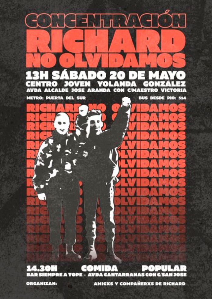28 años después Alkorkón sigue recordando y reivindicando la memoria de nuestro compañero Richard, asesinado por un grupo de fascistas el 21 de mayo de 1995.