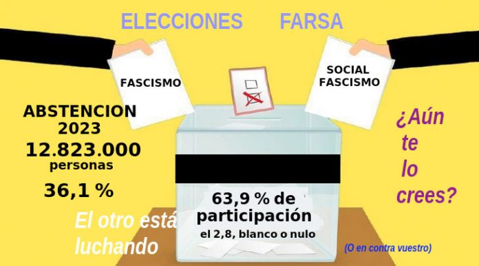Bloque social-fascista: PSOE -0,4, P y marcas -0,9, ERC -0,3, MM -0,1… = baja 1.700.000 votos. Unos 9.728.000 votos