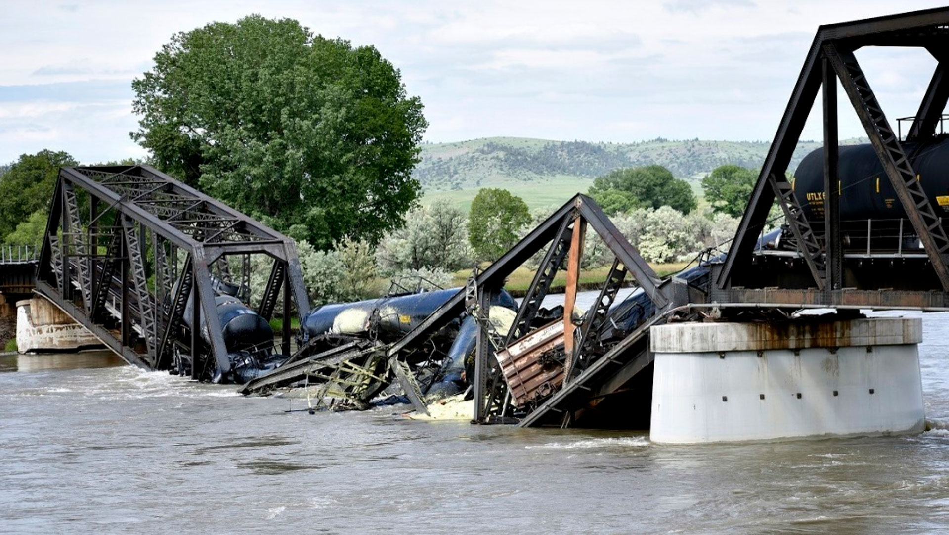 EEUU IMPLOSIONA COMO OCEANGATE. Tren se descarrila en el río Yellowstone después de que el puente colapsara, lo que generó temores de derrames peligrosos. SE LLEVAN TAREAS DE EMERGENCIA en el río Yellowstone cerca de Laurel, Montana. pic.twitter.com/oraF4MSRV5