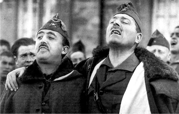 En el alzamiento armado fascista, (1936-1939), la Legión se alineó con el bando franquista y participó en numerosas batallas y campañas bajo la ideología de «¡Viva la muerte!». La violencia extrema utilizada por la legión contra aquellos considerados enemigos políticos partía de la idea de que ellos encarnaban los verdaderos valores de España, frente a los que consideraban la Anti-España: obreristas, comunistas, catalanistas, pacifistas, sufragistas, ateos…