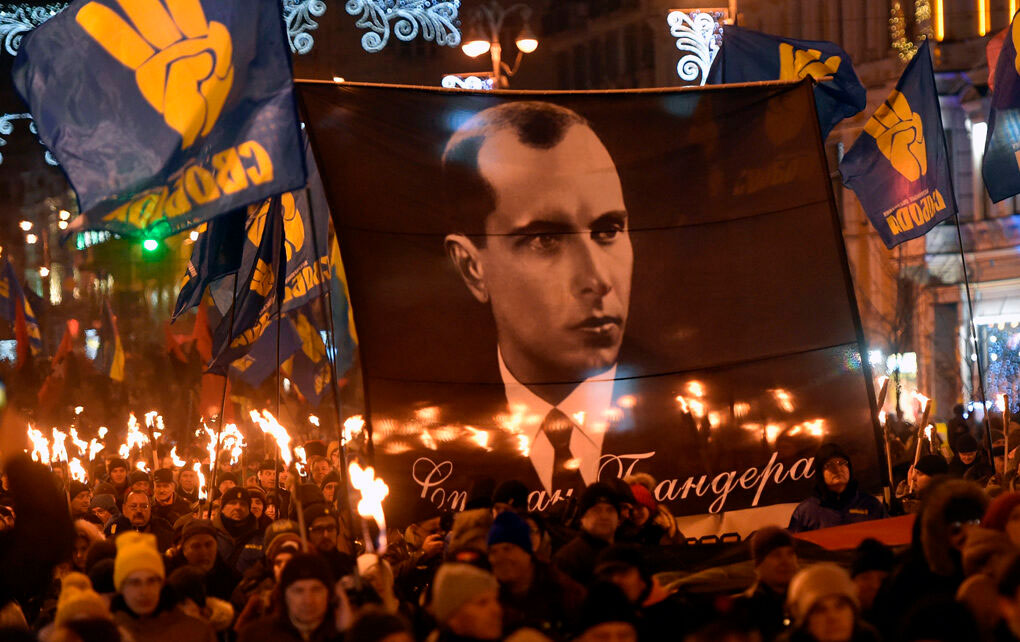 Imagen de portada: Nacionalista ucranianos homenajeando a Stepán Bandera. Foto: Sergei Supinsky/AFP.