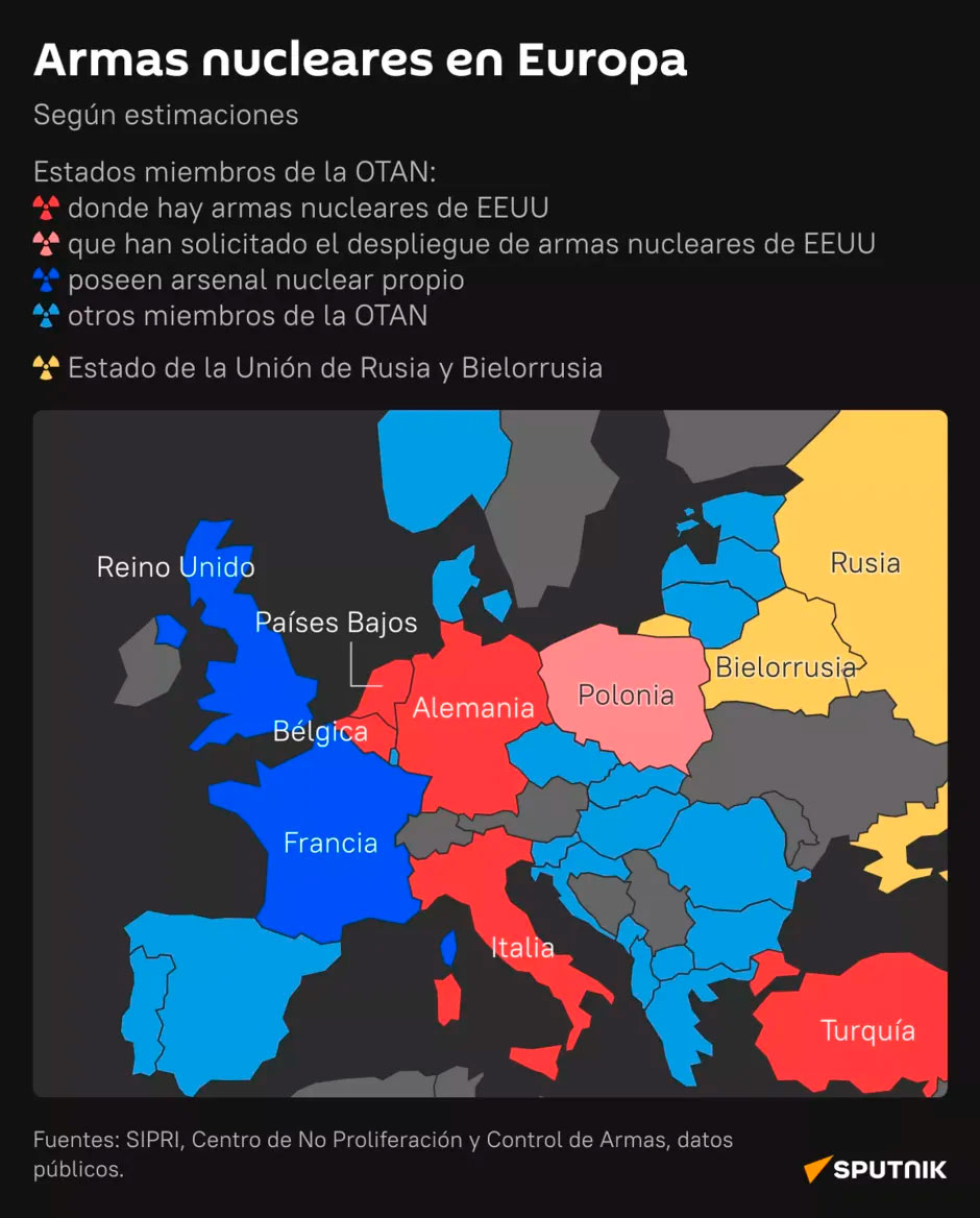 Además, recordó que Estados Unidos lleva años emplazando armas nucleares en diversos países en el marco de la OTAN, entre ellos Alemania, Bélgica, Italia, Países Bajos y Turquía.