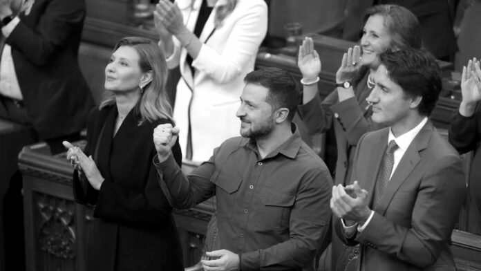 El presidente ucraniano, Vladímir Zelenski, junto con el primer ministro de Canadá, Justin Trudeau, y cientos de parlamentarios canadienses, ovacionaron a un veterano de la Segunda Guerra Mundial «que luchó por la independencia de Ucrania contra los rusos».