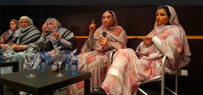 Haidar, a la que cuesta hablar en castellano porque “nuestra generación ha vivido bajo la ocupación marroquí por culpa de España”, agradeció a la directora de FISahara, María Carrión, “querida hermana y amiga”, la invitación para participar en el 20 aniversario del festival y ser la primera vez que coinciden cuatro mujeres activistas saharauis de las zonas ocupadas –Haminetu Haidar, Sultana Jaya, ElGhalia Djimi y Mina Baali–, pertenecientes a ISACOM, Instancia Saharaui contra la Ocupación Marroquí, “una organización que molesta mucho a Marruecos, que ha llegado a abrir una investigación contra sus integrantes, sobre todo contra nosotras, que somos cofundadoras”.