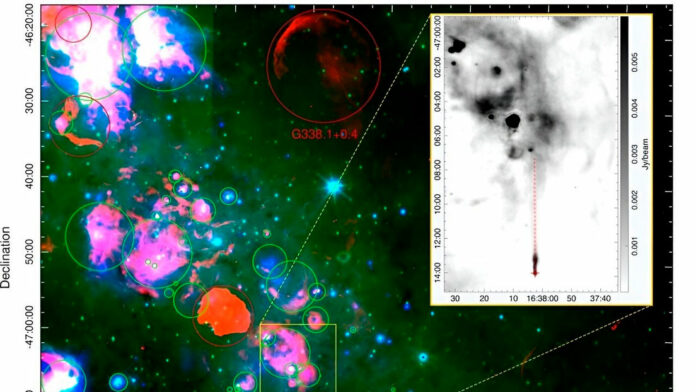 Un grupo internacional de astrónomos informó en un artículo recientemente publicado en el servicio de preimpresión arXiv el descubrimiento de una nueva nebulosa de viento púlsar (PWN, por sus siglas en inglés) y del púlsar que sería su fuente de alimentación.