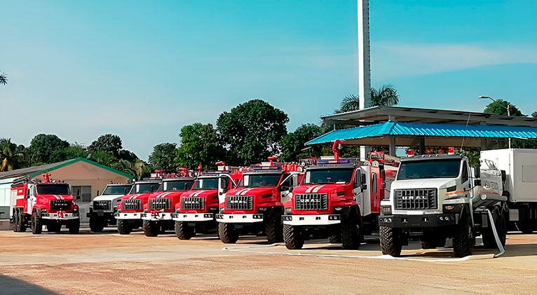 El Primer Coronel Luis Carlos Guzmán Matos, jefe del Cuerpo de Bomberos de Cuba (CBC), agradeció la donación, que multiplicará las capacidades de respuesta cubana a incendios en bases de almacenamiento de combustibles, aeropuertos, puertos y otras instalaciones, con los autos producidos por la empresa rusa Ural.