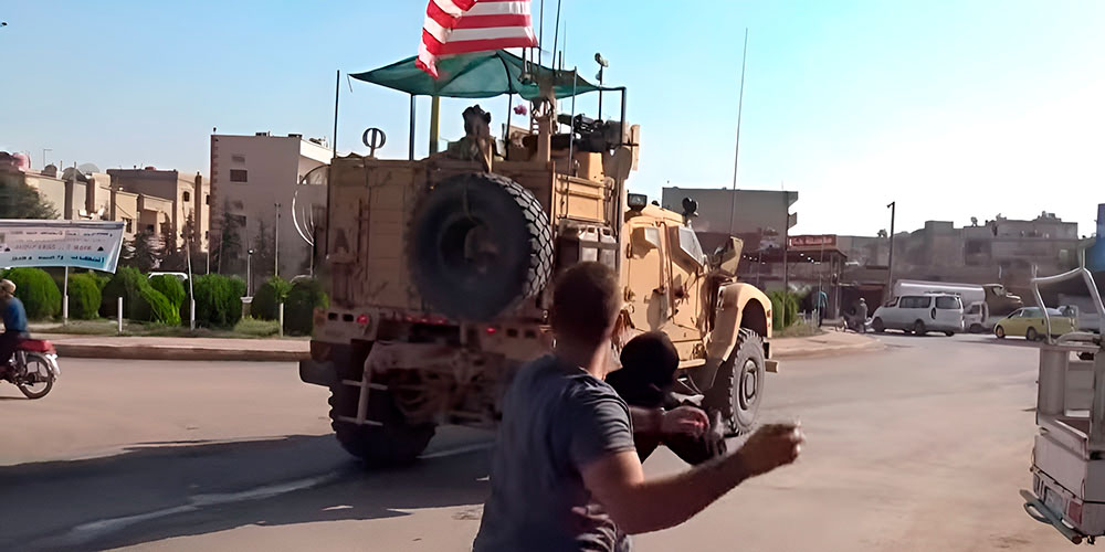 Los lugareños arrojaron piedras contra los uniformados del Pentágono y los efectivos de su milicia mercenaria local Fuerzas Democráticas de Siria (FDS), quienes acompañaban el convoy.