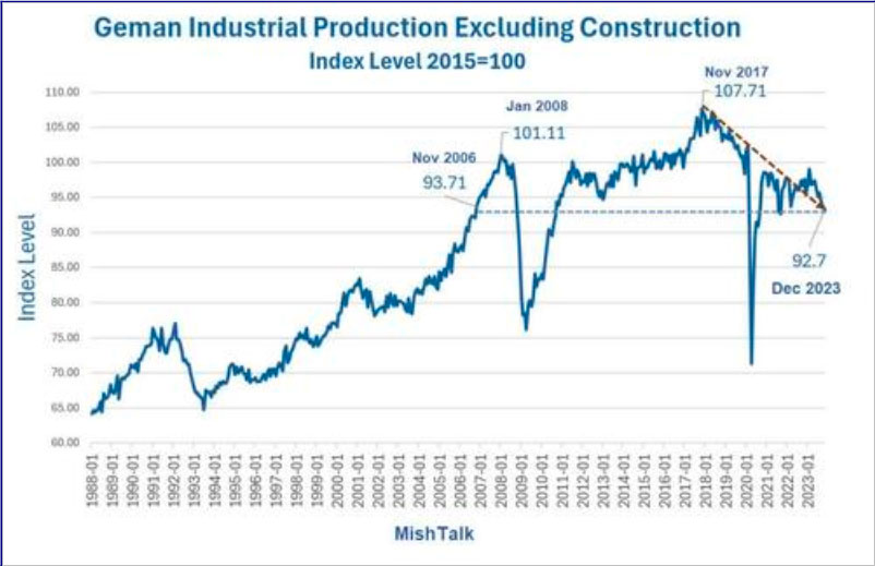 Podéis ver que Alemania se sitúa ahora a un nivel más bajo que en 2006, cuando se inició la primera gran crisis capitalista que eclosionó en 2008-09. Eso quiere decir una cosa: que Alemania ha llegado a su fin como «superpotencia» industrial. No hay dinero para la industria, pero sí para un sector de esa industria, la armamentística. Los alemanes tienen problemas con el papel higiénico, pero se pueden limpiar el culo con cañones. O con el famoso (ironía) «Leopard» (como a sus abuelos nazis, a los alemanes les gusta mucho dar estos nombres a sus tanques: Tigre, Pantera, ahora Leopardo…). Todo por EEUU, que es quien manda. Al aceptar la voladura del gasoducto Corriente del Norte 2, Alemania (todos ellos, incluyendo y sobre todo a los niñatos «progres» que la gobiernan) eliminó el eje del modelo industrial exportador del país: la energía barata. Ahora se ven las consecuencias. Por eso está técnicamente en recesión. Porque no puede más.