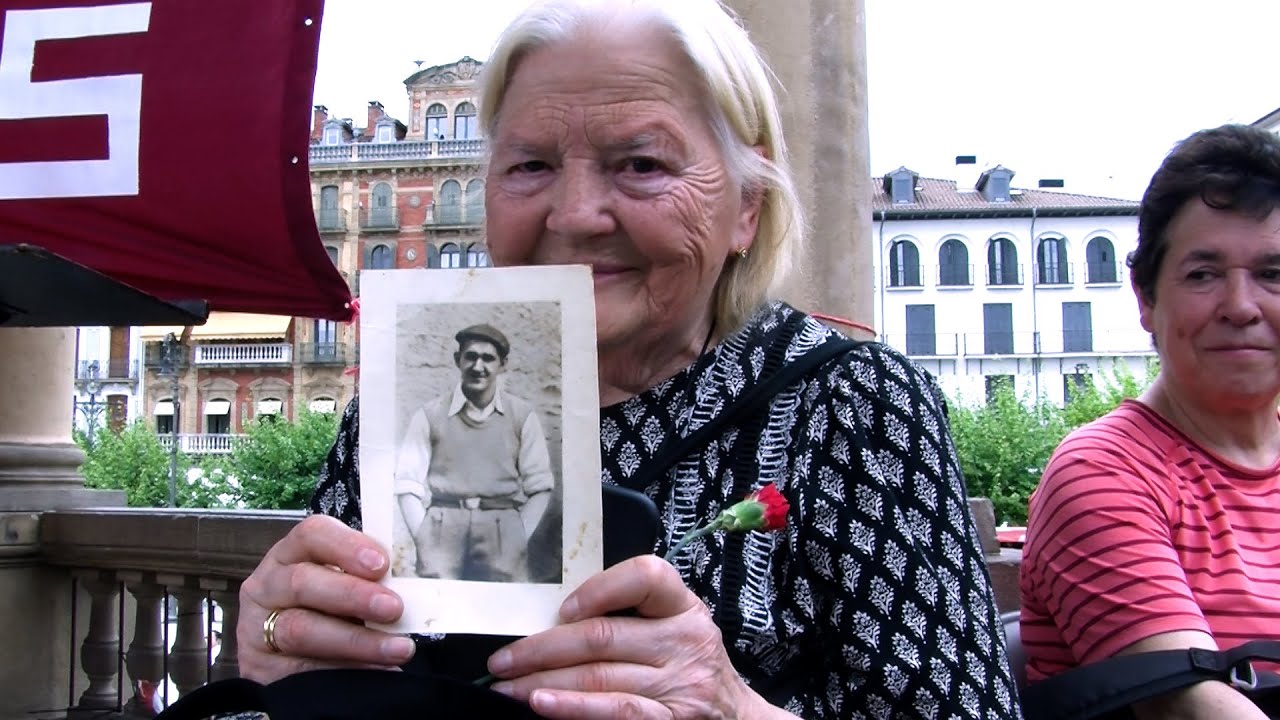 Familiares y miembros de asociaciones memorialistas han dado lectura en la plaza del castillo a los más de 3.700 asesinados en Navarra tras el golpe de estado fascista de 1936. Para las familias no hay ninguna duda sobre el monumento a los caídos: “no hay resignificación posible.”