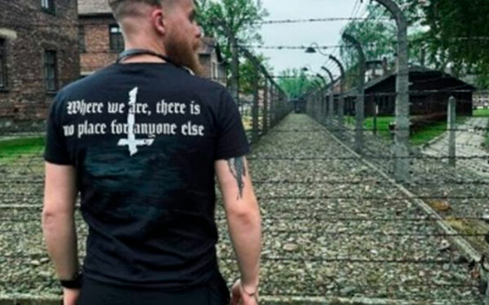 Nikita Miroschenko, un soldado neonazi ucraniano, en publicaciones en Instagram, se burló del sufrimiento causado por los nazis en Polonia. En un vídeo, muestra las puertas de Auschwitz con la infame frase “Arbeit macht frei” (El trabajo te hace libre) con música militar alemana de fondo, y en una foto aparece con una camiseta con la frase: “Donde estamos, no hay lugar para nadie más”, dictado por Adolf Hitler.